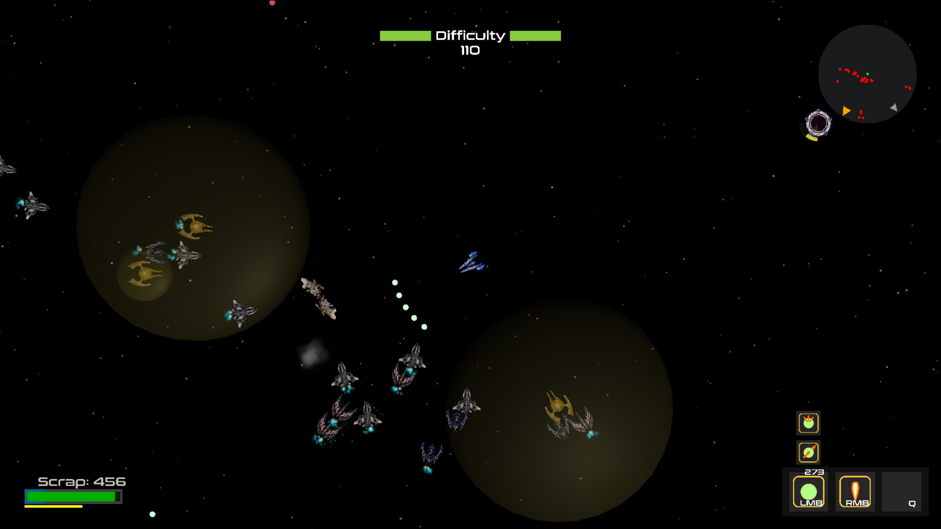 Movement: Ship rotates to mouse cursor position.- [ESC] Open menu